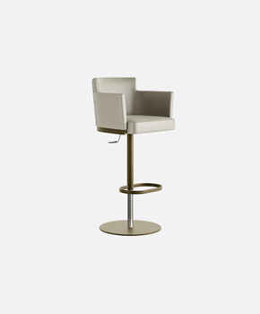 Ely is an enveloping armchair with a swivel base that is well suited to furnishing a living room or living area with a clean and contemporary style. The design project is by Assmann + Kleene GbR and consists of a solid swivel base in painted or chromed metal and a comfortable seat with leather, eco-leather or fabric upholstery. A designer furnishing accessory, suitable for both living contexts and working environments. Ely is also available in the Diamond version, with quilted backrest. The Ely stool completes the collection: suitable for both domestic and contract environments, it features a comfortable height-adjustable seat, supported by a swivel metal base.